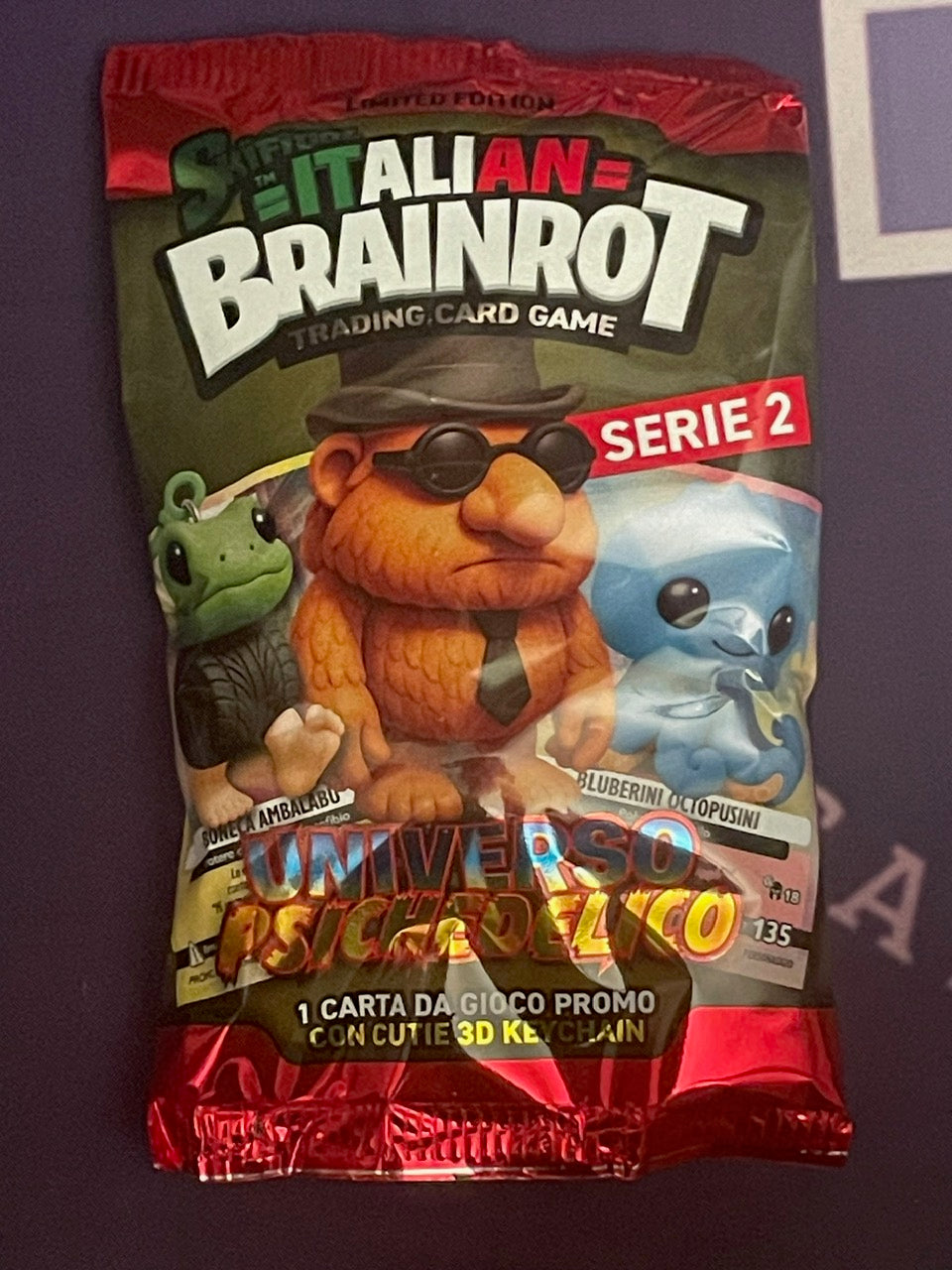 Bustina sigillata contenente Card Promo + relativo Cutie 3D della collezione Italian Brainrot Serie 2 “Universo Psichedelico” della Skifidol